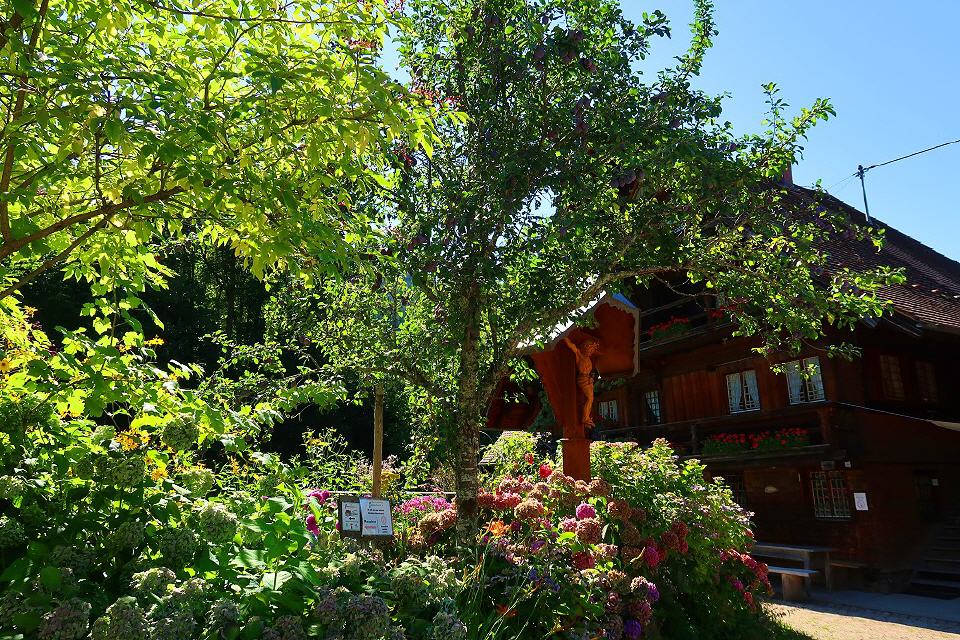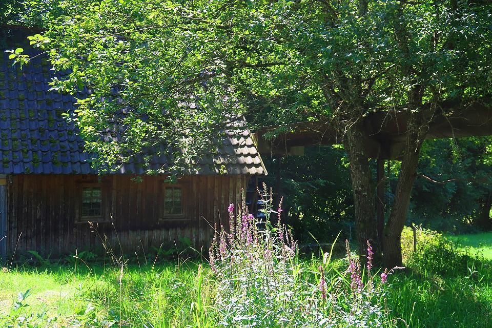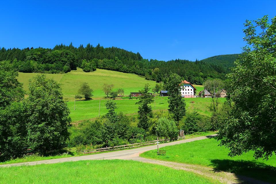 Der Weg führt oberhalb des Wehrlehofes nach rechts bergauf zum Sedleweg. Dieser ruhige Waldweg, auf dem Sie schöne Aussichten ins Haslachtal genießen, führt zum Gummeneck, wo Sie weitere schöne Aussichten ins Tal haben. Von hier folgen Sie dem Weg Nr. 3 in Richtung Ebertle. Nach 300 m gehen Sie rechts durch den Wald talabwärts, vorbei am Wehrlehof zur Wehrlehof-Mühle. Der Weg führt weiter durch das idyllische Weberloch. Wenn Sie aus dem Wald kommen, gehen Sie links ab zur Neuenbergstraße bis runter zur Talstraße. Dort gehen Sie links talaufwärts zum Oberen Felsen und überqueren die Talstraße direkt zur kulturhistorischen Ölmühle.