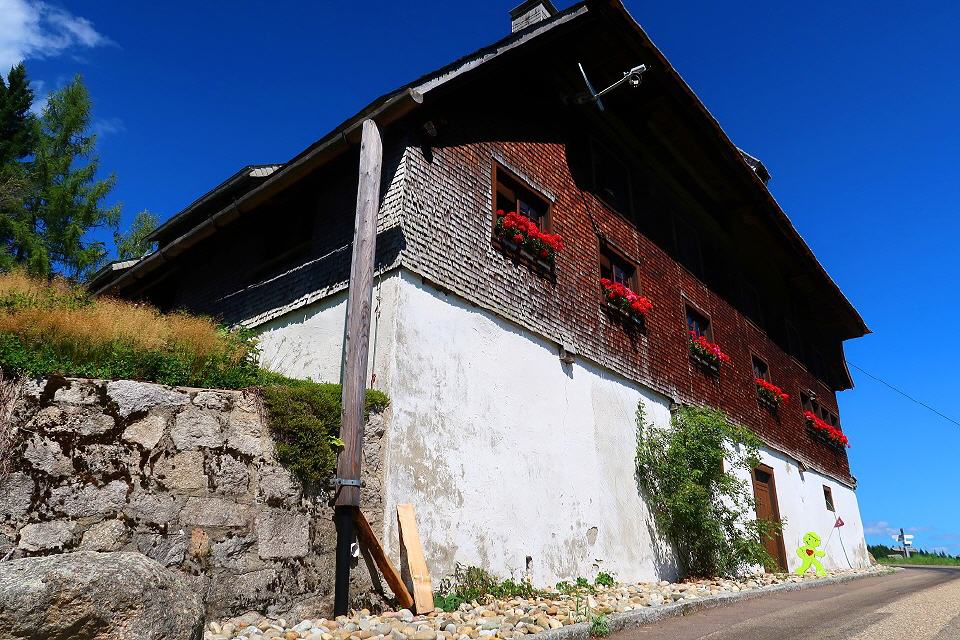 Kurz nachdem wir in den Wald kommen, führt der Weg von der Straße auf einem kleinen Pfad vorbei an einer weiteren Schanzenanlage. Über offenes Feld führt der Weg hinab zum Ochsenhof. Der Schwarzwaldhof wurde im Jahre 1700 erbaut, in den letzten Jahrzehnten renoviert und steht heute unter Denkmalschutz. Mit seinem weit heruntergezgenen Dach fügt er sich sehr gut in die Landschaft des Naturschutzgebietes Rohrhardsberg ein. Von hier führt der Weg parallel zum Bach steil bergab in die ehemalige Ortsmitte von Rohrhardsberg mit dem alten Schul- und Rathaus und einigen ehemaligen Waldarbeiterhäusern. Rohrhardsberg wurde erstmals 1335 als Rohartesberg urkundlich erwähnt. Im ausgehenden Mittelalter gehörte Rohrhardsberg zur Herrschaft Triberg und kam mit der Herrschaft an das Haus Habsburg. Mit dem Großherzogtum Baden wurde Rohrhardsberg selbstständig. 1971 wurde es zu Schonach eingemeindet.
