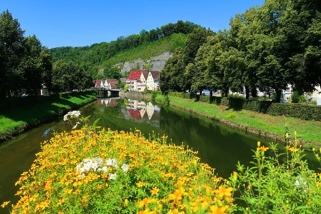 Im besonders reizvollen Teil des oberen Neckartals, zwischen Schwarzwald und Schwäbischer Alb, liegt Oberndorf am Neckar in 450 bis 700 Meter Höhe. Die Stadt in der Ferienregion Oberer Neckar ist ideal für Wanderer und Radfahrer. Wanderwege entlang des Neckars führen zu zahlreichen Sehenswürdigkeiten. Oberndorfs Oberstadt lädt zum Bummeln und Flanieren ein. Sie bietet zahlreiche Cafés und Ladengeschäfte. Bild antippen!