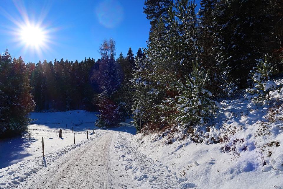 Durch das Winterparadies bei Hinterzarten im Hochschwarzwald führt eine aussichtsreiche Rundtour um die 1015 m hohe Kesslerhöhe. Die Tour misst gerade mal knapp 6 km und ist in 2,5 Stunden gut zu schaffen. Start ist beim Kurhaus in Hinterzartens Ortsmitte. Von dort geht es in südlicher Richtung zunächst durchs Dorf, um schließlich am Waldrand hinauf entlang der Kesslerhöhe zu gelangen. Ab hier beginnt die Winterwanderung durch die herrliche Schneelandschaft.