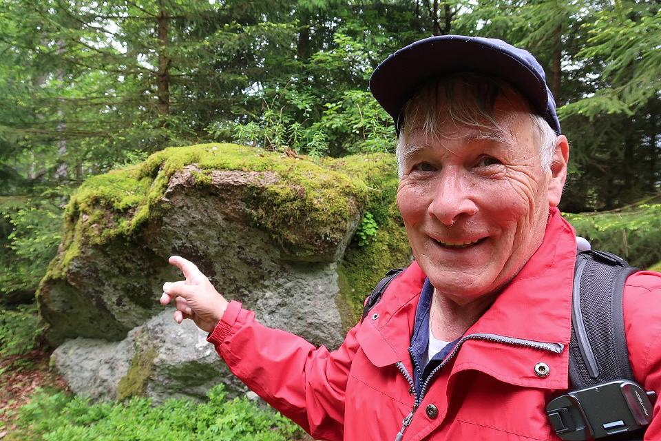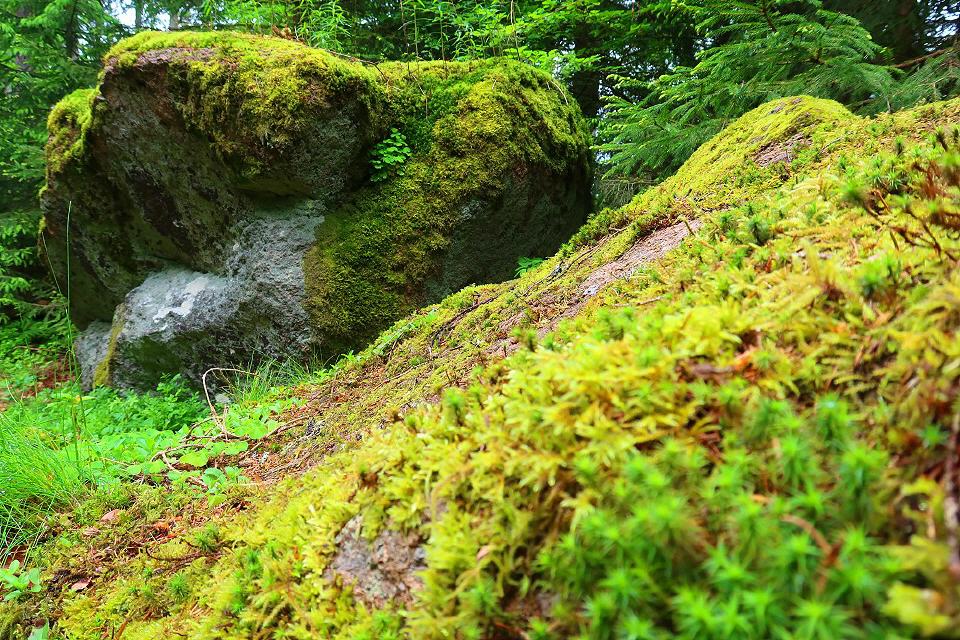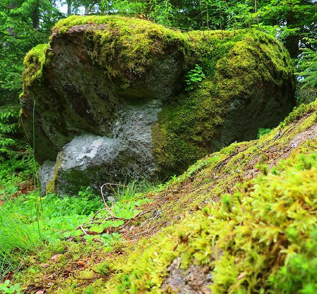 Denn auf dem Monolith ist eine schalenartige Vertiefung zu sehen. Und unter den Moosen und Flechten führt seitlich eine Ablaufrinne fort. Das könnte kein Zufall sein, schließlich haben auch andere Schalensteine im Schwarzwald ähnliche Muster. Könnte es sich hier um einen Opferstein gehandelt haben?