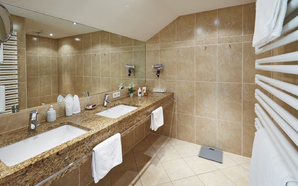 Doppelzimmer Kinzigtal. Doppelzimmer 34 bis 36 qm, Loggia/Balkon 4 bis 8qm, Waldseite mit Morgensonne. Unvergessliche Urlaubsmomente garantiert: Wenn die Morgensonne durch den Schwarzwald blinzelt und durch das geräumige Doppelzimmer flutet, steht einem perfekten Ferientag nichts mehr im Weg. Der elegante Stil – akzentuiert mit traditionellen Elementen – sorgt für höchsten Wohnkomfort. Besonderes Ausstattungsmerkmal: separate Toilette und teilweise begehbare Ankleiden.
