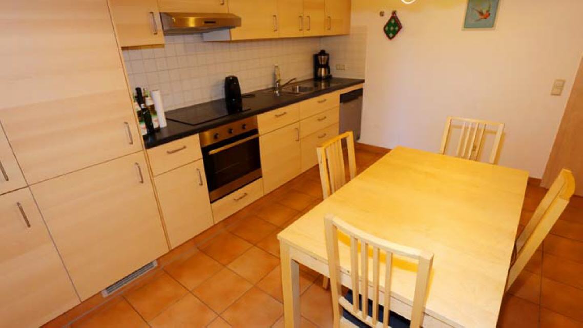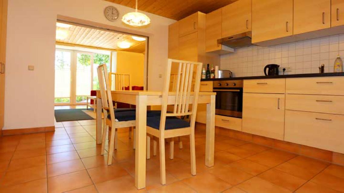 gut ausgestattete Wohnküche mit großem Esstisch
