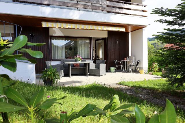 Die Ferienwohnung liegt direkt am Kurpark in Bernau im Schwarzwald, dem schönsten Hochtal des Schwarzwaldes. Sie ist neu renoviert und lässt keine Wünsche offen. Die Fewo hat ein gemütliches Wohnzimmer, eine schöne Küche, zwei Schlafzimmer und eine eigene Terrasse mit Blick zu den Schwarzwaldbergen. Aber auch eine große Liege- und Spielwiese gehören dazu. Bild antippen!