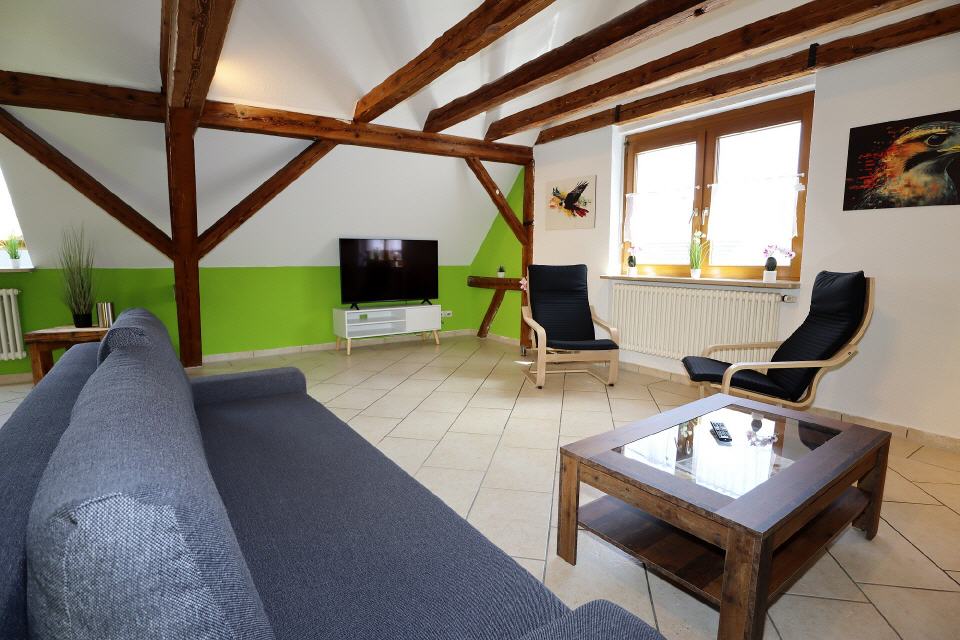 Die Wohnung Falkenburg bietet Platz für bis zu 8 Personen – ideal für Familien, Freundesgruppen oder alle, die eine besondere Auszeit vom Alltag suchen.