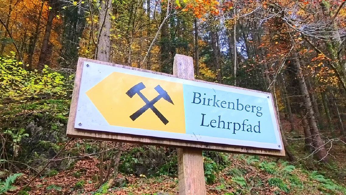 Auf einer Distanz von nur 1,6 km erschließt der Lehrpfad das Bergbaurevier am Birkenberg. Wie die Bergleute damals arbeiteten und lebten, das erfährt man ausführlich auf 23 Schautafeln. Der Rundgang führt zunächst durch einen tiefen, schluchtartigen Verhau mit einer großen Radstube zur Entwässerung der Stollen und Schächte. Danach geht es den steilen Nordhang hinauf, vorbei an verfallenen Stollen und Schächten. Im höher gelegenen Abschnitt quert der Pfad eine ehemalige Bergleutesiedlung mit noch erkennbaren Arbeits- und Wohnterrassen und tiefe Schachtpingen. Schließlich erreicht der Weg beim Wiederabstieg ins Tal und als Höhepunkt der Wanderung die Ruine der Birchiburg, die man von einer Aussichtsplattform gut überblicken kann. Am Ende der Tour lädt die Snwelin-Hütte zu einem Picknick ein.