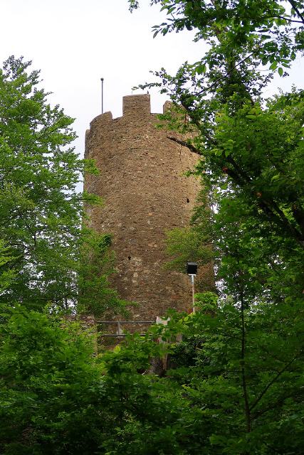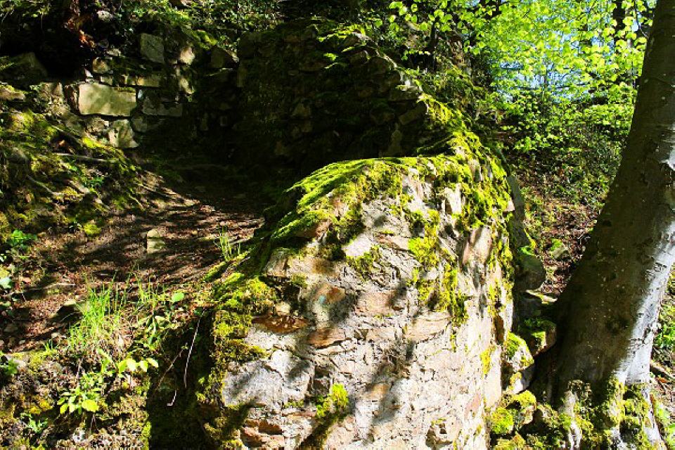 Es zeigte sich, dass dort ein 2,70 Meter tiefer Graben in den Fels hineingenauen war. Im Süden und Westen der Burg ist dieser heute teilweise noch sichtbar, im Norden aber fast völlig verfüllt. Der Burggraben wurde schon im Mittelalter als Abfallgrube genutzt und mit Küchenabfällen gefüllt, wovon sich nur Tierknochen und zerbrochene Keramiktöpfe erhalten haben. Darüber lag Bauschnutt der Burganlage, der wohl erst nach der Zerstörung in den Bauernkriegen in den Graben geriet.