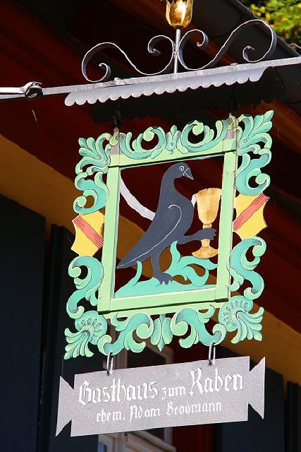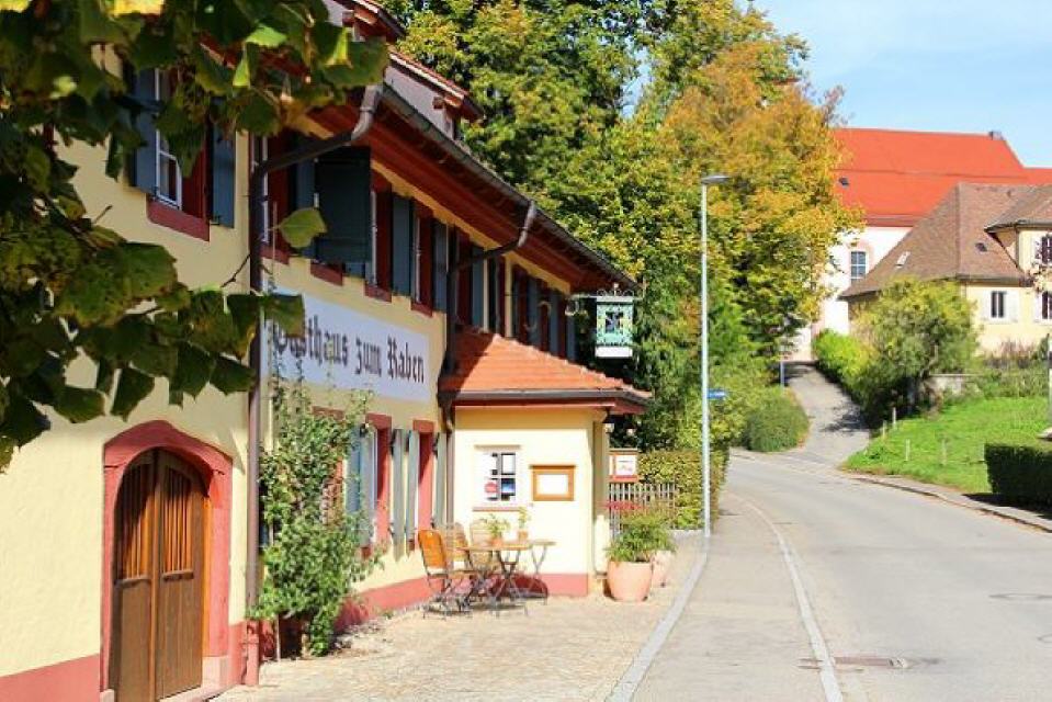 Ein kurzes Stück von der der Kirche entfernt steht der Gasthof „Zum Raben“. Er wurde erstmals 1604 urkundlich erwähnt; der heutige Bau stammt aus dem Jahr 1805. Der Gasthof spielte wegen des steilen Weges zum Schauinsland und nach Todtnau eine wichtige Rolle. Schließlich legten die Fuhrleute hier eine Rast ein. Manchmal ging es hier ziemlich zünftig zu, wie ein Beschwerdebrief aus dem Jahr 1772 beschreibt: “Der Wirt erwiderte, dass er mit Essen nicht versehen wäre, auch einen Bissen Brot nicht im Hause hätte… Meine Tochter verlangte darauf das Nachtlager… Allen Einwänden zum Trotz mußten sie in einem Bett zusammenschlafen. Nach einer Stunde kam dann auch noch der Wirtsknecht in die gleiche Kammer und legte sich in ein… daran anstoßendes Bett”. Heute bietet der “Raben” allen Komfort für Familienfeiern und gepflegtes Essen. Das 1912/13 im Schwarzwaldstil gebaute Schulhaus rundet das Dorfzentrum ab.