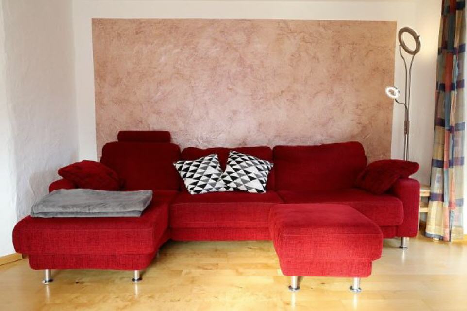 Im Wohnzimmer steht Ihnen eine geräumige Wohnlandschaft zur Verfügung. Hier können Sie ausruhen und die Zeit genießen. Sie haben ein modernes TV mit Flachbildschirm und Sat-Empfang. Die große Couch lädt zum Verweilen ein. Am Esstisch mit Eckbank und Stühlen können Sie – genauso wie in der ebenso geräumigen Küche – gemeinsam essen, spielen oder gemeinsam Zeit verbringen.