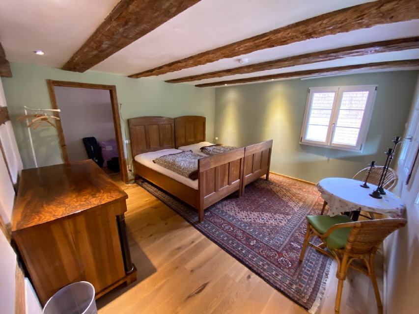 Unsere Ferienwohnung liegt im schönen Reichenbächle in Sexau bei Freiburg / Emmendingen in absolut ruhiger Lage. Die Fewo ist in einem restaurierten Fachwerkhaus und hat 120 Quadratmeter. Sie bietet 2 Schlafzimmer mit jeweils 2 Doppelbetten und einem großen, offenen Wohn-Essbereich mit Kamin, eine moderne Einbauküche (komplett eingerichtet) sowie eine große, überdachte Terrasse mit Grillmöglichkeit. Zusätzlich ist ein luxuriöses Bad mit ebenerdiger Dusche und einer großen Badewanne vorhanden. Kinderbettchen und Hochstuhl auf Anfrage. Bettwäsche und Handtücher werden gestellt.