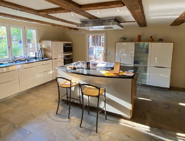 Unsere Ferienwohnung liegt im schönen Reichenbächle in Sexau in absolut ruhiger Lage. Die Fewo ist in einem restaurierten Fachwerkhaus und hat 120 Quadratmeter. Sie bietet 2 Schlafzimmer mit jeweils 2 Doppelbetten und einem großen, offenen Wohn-Essbereich mit Kamin, eine moderne Einbauküche sowie eine große, überdachte Terrasse mit Grillmöglichkeit. Bild antippen!