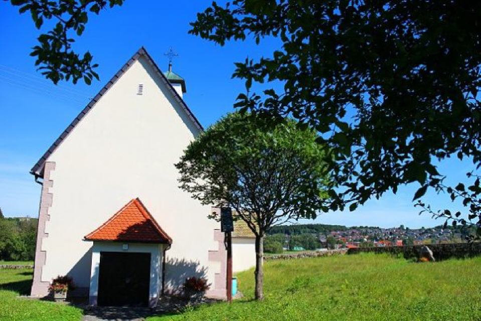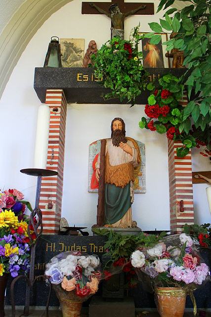 Aus Dankbarkeit für die Rückkehr aus dem Krieg ließen die Eltern, Martin und Olivia, geborene Käfer, 1960 das kleine Gotteshaus errichten und widmeten es dem Heiligen Judas Thaddäus.