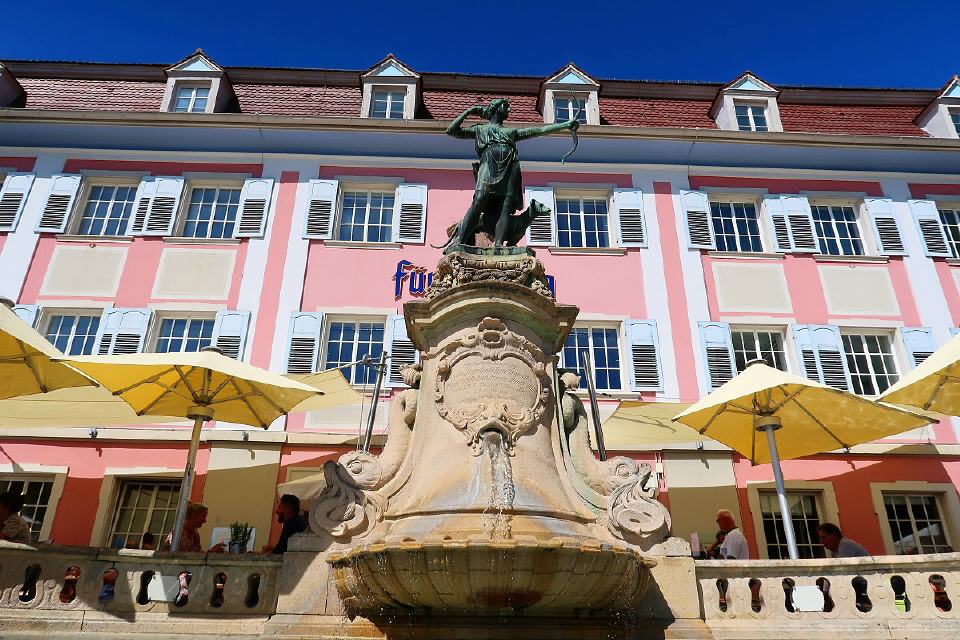 Beleuchtete Donauquelle. Nach fast dreijährigen Sanierungsarbeiten kann die Donauquelle, das Alleinstellungsmerkmal der Stadt Donaueschingen, wieder von Besuchern bestaunt werden. Die Quelle, als Geburtsort des zweitlängsten europäischen Flusses, wurde im Zuge der Neugestaltung des Residenzbereiches einer grundlegenden und technisch wie denkmalpflegerisch anspruchsvollen Sanierung unterzogen. Ein Aufzug ermöglicht nun einen bequemen und barrierefreien Zugang. Der Quelltopf erstrahlt mit seinen hochwertigen Bildhauerarbeiten in neuem Glanz und ist ganzjährig eine Reise wert. Die beleuchtete Donauquelle, die in den Wintermonaten bis 18 Uhr zugänglich ist, fasziniert mit einem ganz besonderen Charme. Lassen Sie sich vom Zauber der aufsteigenden Wasserbläschen begeistern, bevor sich das Quellwasser auf seine lange Reise ins Schwarze Meer begibt und hierbei die verschiedenen Kulturen Europas von West nach Ost auf eine einzigartige Art und Weise verbindet.