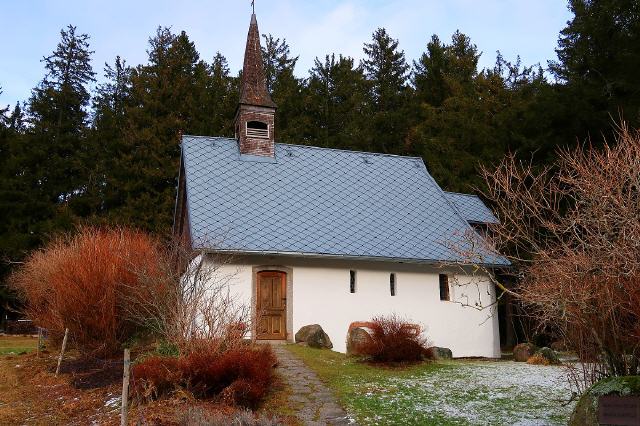 Dieser Weg führt um die Rosseck herum, einer Erhebung unweit vom Brend, dem Hausberg von Furtwangen. Auf diesem ebenen Weg gibt der Wald immer wieder herrliche Ausblicke auf die benachbarten Berge wie Kandel und Feldberg frei. Diesem Weg folgst Du für ungefähr 2,5 km, bevor Du nach einem leichten Anstieg wieder zurück zur Martinskapelle gelangst. Hier lohnt ein Besuch der eigentlichen Martinskapelle, kurz oberhalb vom Höhengasthof Kolmenhof, der zu einer Schlusseinkehr einlädt.