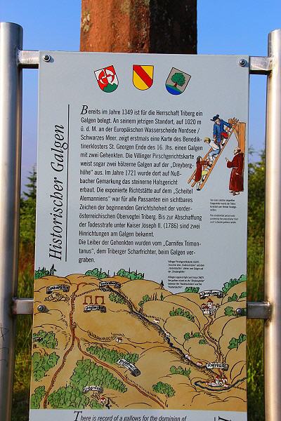 So begann Hans Keller seine Triberger Galgengeschichte in der Stuttgarter Zeitung vom 11. Juli 1962. Der Grund für die Wahl dieser Stelle zum Hochgericht erfolgte mit Sicherheit nicht nur wegen des herrlichen Ausblicks als letzte Vergünstigung für den Verurteilten, vielmehr stoßen hier die Grenzen verschiedener Orte aufeinander, ein symbolischer Hinweis auf die Hinrichtungsstätte der ganzen Herrschaft.