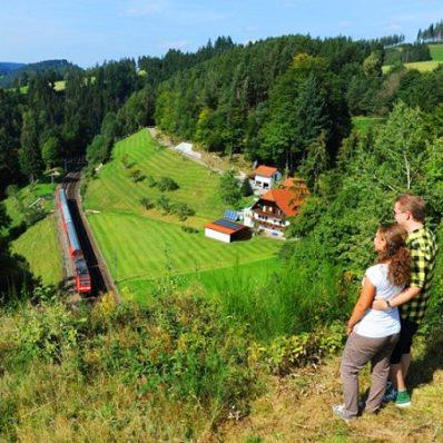 Der Schwarzwaldbahn-Erlebnispfad führt die Wanderer und Spaziergänger dieses Weges in die Geschichte des Baues und den laufenden Betrieb der Schwarzwaldbahn zwischen Hornberg, Triberg und St. Georgen ein.