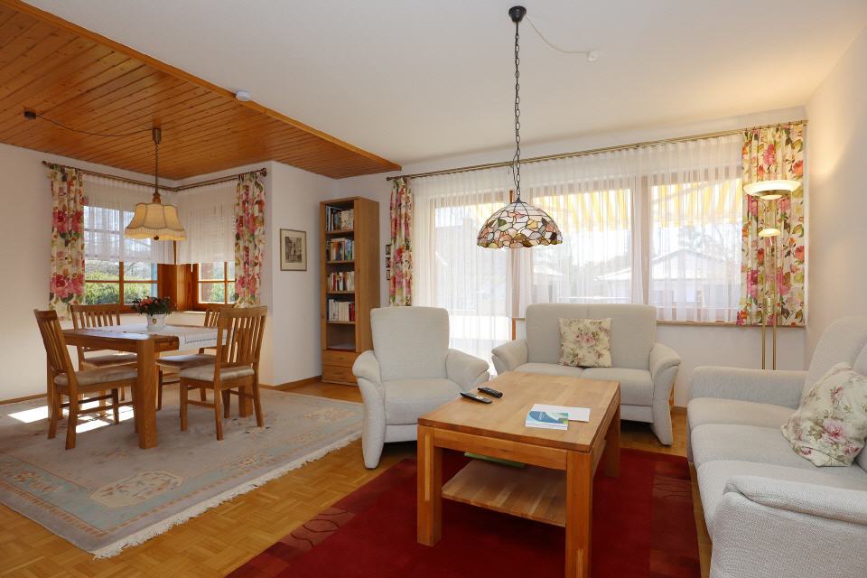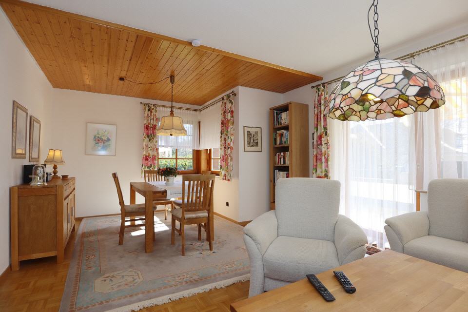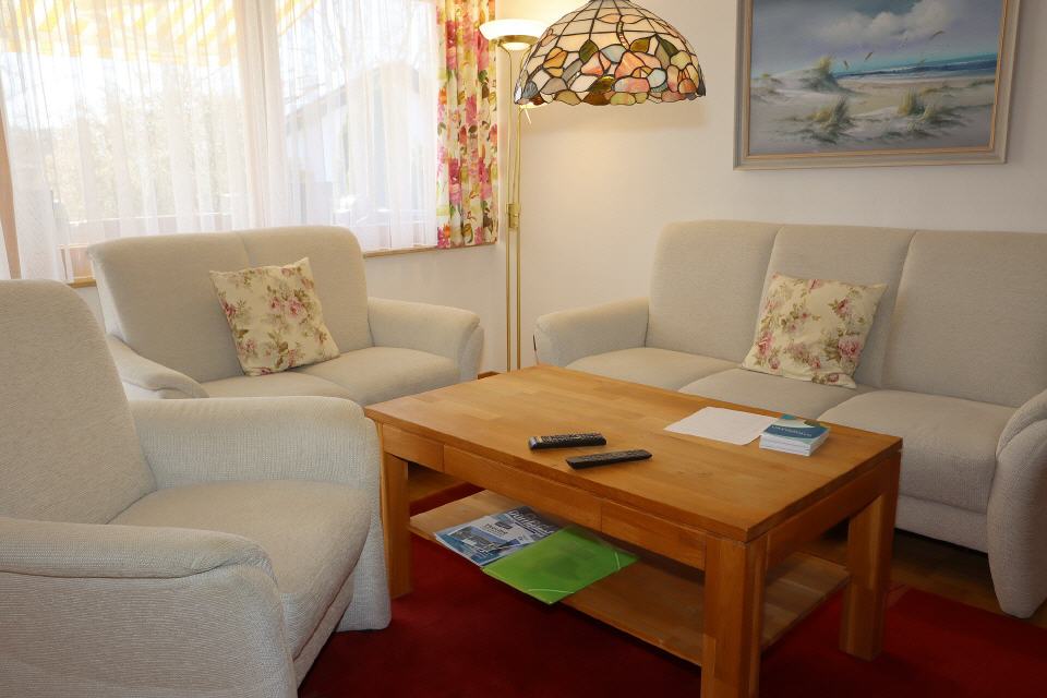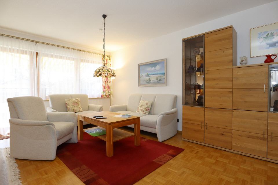 Das Wohnzimmer liegt in Südrichtung. Hier haben Sie eine sehr geschmackvolle Couchgarnitur, Kabel-TV, Farbfernseher, CD-Player, eine Leseecke und haben einen schönen Balkon.