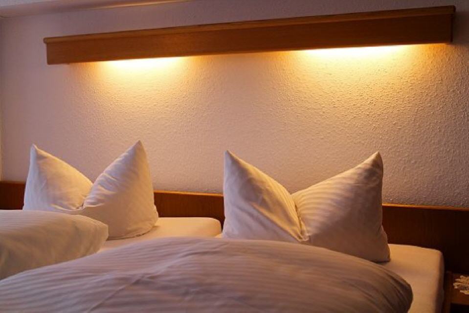 Fühlen Sie sich in unseren Gästezimmern wohl. Wir haben 11 Zimmer mit zusammen 19 Betten, davon 3 Einzel- und 8 Doppelzimmer. Sie sind teilweise mit Balkon ausgestattet. Alle Zimmer sind modern und komfortabel eingerichtet, haben Flachbild-TV, Bad mit Dusche und WC. WLAN auf Anfrage. Morgens erwartet Sie ein reichhaltiges Frühstücksbüfett. Und tagsüber lädt unser schöner Garten mit Liegewiese und Teich, Pavillon sowie Sitzgelegenheiten und Liegestühlen zum Verweilen ein.