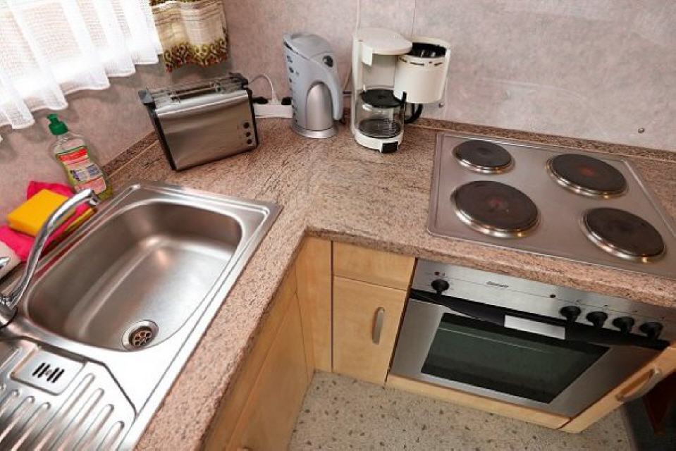 - Die Wohnküche ist ausgestattet mit Herd (Dunstabzug),