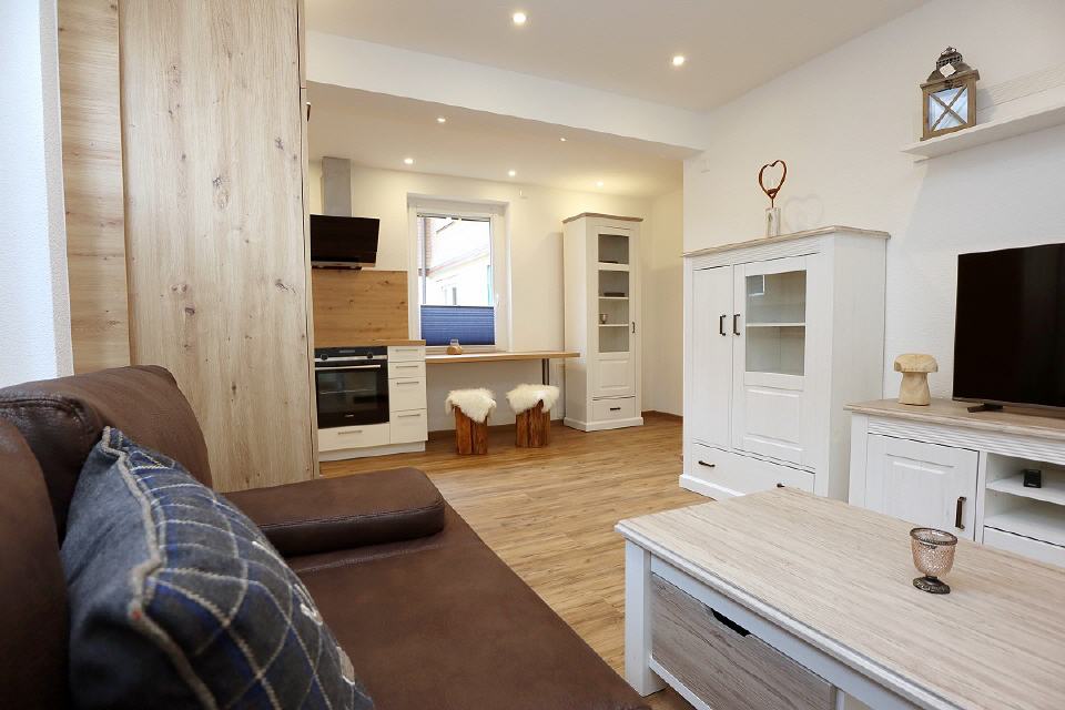 Das "Tannenzäpfle" ist unser Appartements für "zwischendrin". Es hat eine Wohnfläche von ca. 32 qm und ist damit größer als ein Hotelzimmer und kleiner als unsere großen Feriensuiten. Die Ferienwohnung verfügt über zwei Zimmer (Schlafzimmer und Wohn-Esszimmer). Es ist ideal für Gäste, die im eigenen Appartement frühstücken möchten oder sich abends selbst mal etwas warm machen wollen. Preis: ab 99 Euro pro Nacht (inklusive Endreinigung).