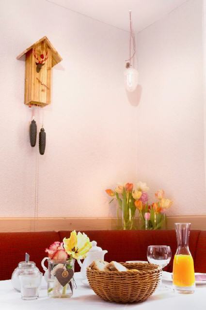 Frische Brötchen gibt's beim Bäcker gegenüber, alternativ ein leckeres Frühstücksbuffet im Schweizerhof. Das hauseigene Restaurant bietet mittags und abends saisonale Küche mit regionalen Produkten (Montags Ruhetag).