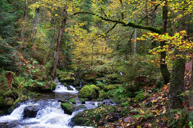 Fast jedes Schwarzwaldtal hat seine Wasserfälle, so auch Sasbachwalden. Die Gaishölle ist ein besonderer Ort. Kaskadenartig fällt der Brandbach ins Tal hinunter. Diese wildromantische Schlucht bei Sasbachwalden mit riesigen Felsen und Findlingen erwandert man am besten bei einer Tour auf dem Premiumweg. Bei einem Höhenunterschied von rund 200 Metern und 13 Brücken geht es hinauf zum Ortsteil Bischenberg / Hörchenberg. Bild antippen!