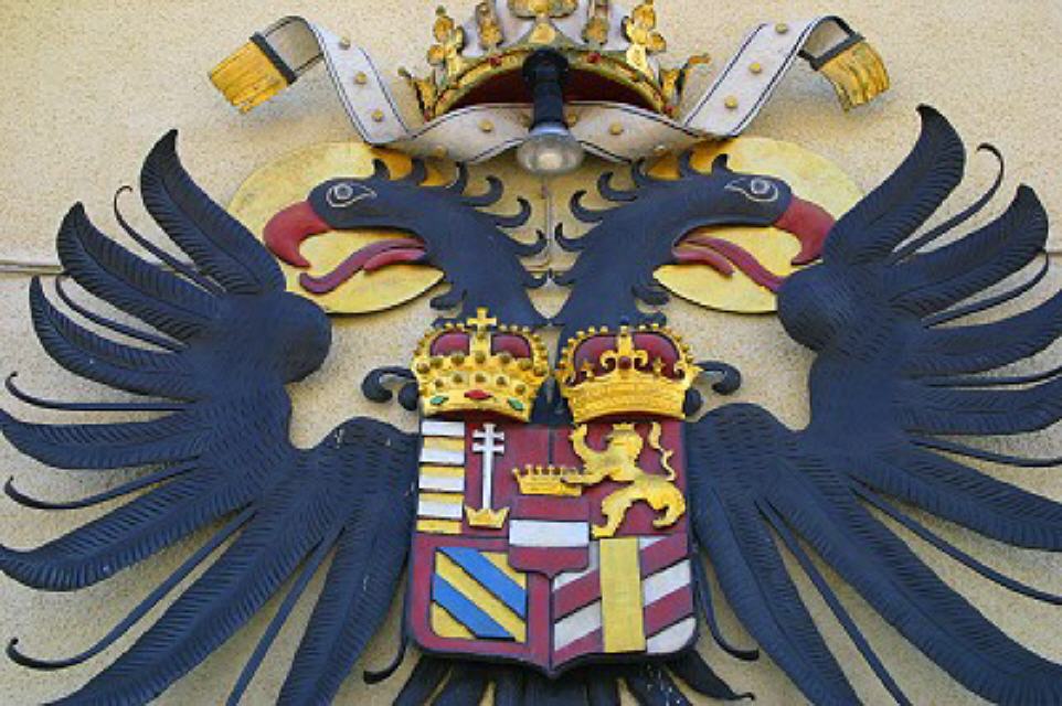 Das gespaltene Wappen zeigt vorn in Rot einen halben silbernen Doppeladler, der im Fang ein goldenes Zepter hält. In der hinteren Wappenhälfte steht auf goldenem Grund eine grüne Tanne, an dessen Stamm ein rotes Eichhörnchen emporklettert.