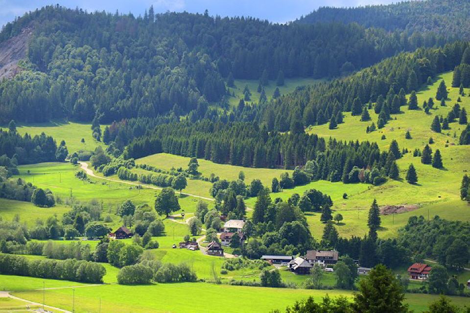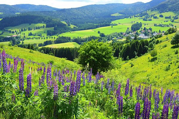 Egal, ob nah oder fern: An diesem Panorama können Sie sich kaum satt sehen. Und wer wissen möchte, welche Berge vor ihm liegen, schaut durch das Viscope – ein Fernrohr, das automatisch Bergnamen und deren Höhen einblendet. Noch ein Stück des Weges durch den Wald, dann ist man am 1349 m hohen Spießhorn mit seinem Gipfelpavillon. Hier ist zugleich der höchste Punkt des Hochtdal Steigs. Über das Nachbartal Menzenschwand hinweg erblickt man in der Ferne die mächtige Kuppel des Doms von St. Blasien.