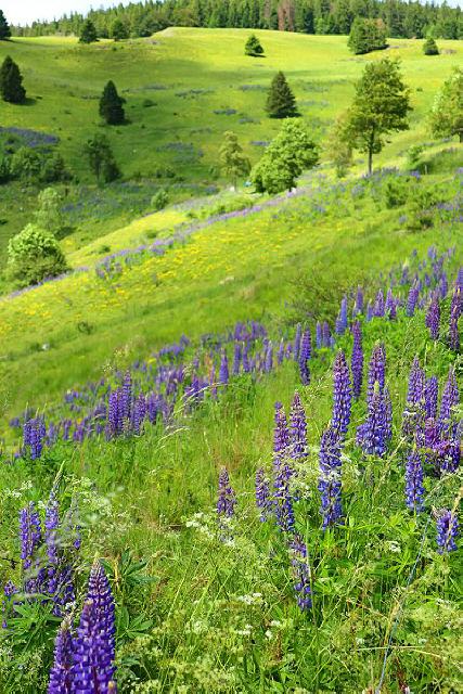 Noch ein kurzes Stück führt der Weg weiter durch den Wald, dann wandert man entlang ausgedehnter Bergweiden. Auch Hinterwälder sieht man hier, die kleinste Rinderrasse Europas. Die große Vielfalt an Blumen und Kräutern begeistert. Auf einer Himmelsliege mit Blick auf Wiesen und Weiden lkässt sich wunderbar die Stille genießen. Am Riggenbacher Eck auf 1125 m ist die Neumannshütte, eine Schutzhütte mit Grillstelle, Himmelsliege und Ausblick auf das langgestreckte Bernauer Hochtal.