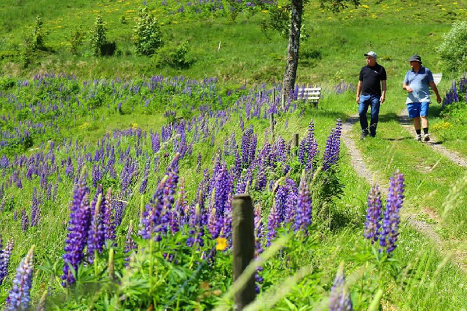 Nach dem Abgang vom Scheibenfelsen geht der Hochtal Steig in den Bernauer Panoramaweg über, einer der schösnten Wege mit Weitblick im südlichen Schwarzwald. Nahezu ohne Steigung genießt man auf 1000 Höhenmeter die Sonnenseite des Hochtals entlang weitläufiger Bergweiden. Zahlreiche Bänke sowie Himmelsliegen laden immer wieder zum Verweilen ein. Zu jeder Jahreszeit begeistert der Pflanzenreichtum. Schließlich erreichen Sie den Kaiserberg, von wo es nur noch bergab bis zum Startpunkt am Wanderparkplatz Ankenbühl geht.