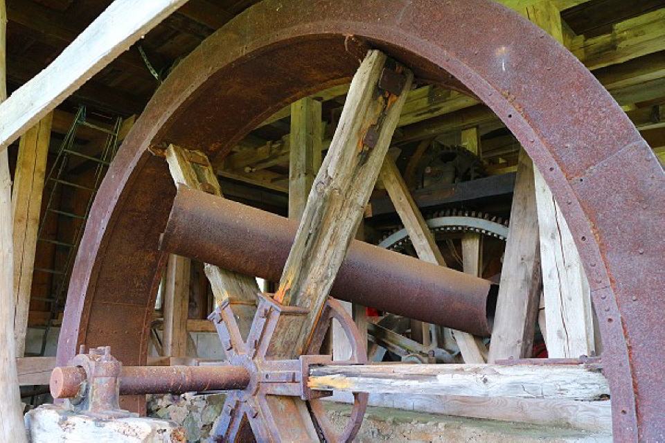 Als Antrieb für seinen erfundenen Skilift verwendete Robert Winterhalder die Wasserkraft seiner Mühle unterhalb des Hauses. Diese Mühle hatte er schon um 1900 zu einem kleinen Wasserkraftwerk umgebaut. Die erzeugte Kraft wurde über ein endloses Drahtseil in das Obergeschoss seines Hauses gebracht, wo Heu und Stroh lagerten. Diese Art Transmission bildete im Prinzip die Grundlage für den Lift. Unterhalb des Hauses befand sich ein Weiher, der mit einem Wehr verschlossen war.