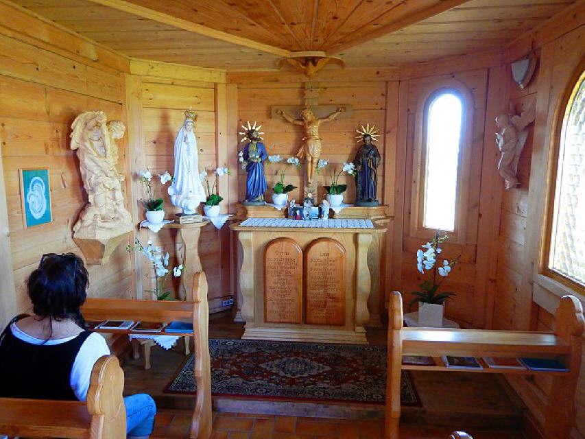 Die Decke zieren auch zwölf gedrechselte Ringe mit Feuerzungen, die an die den Aposteln erschienenen Feuerzungen an Pfingsten erinnern. In die Altarfront sind die Zehn Gebote geschnitzt. Weiter tragen zur Verschönerung des Kapellenraumes Heiligenfiguren bei, insbesondere Judas Thaddäus, der Patron in verzweifelten Lagen, der „Mann für die ganz harten Fälle“.