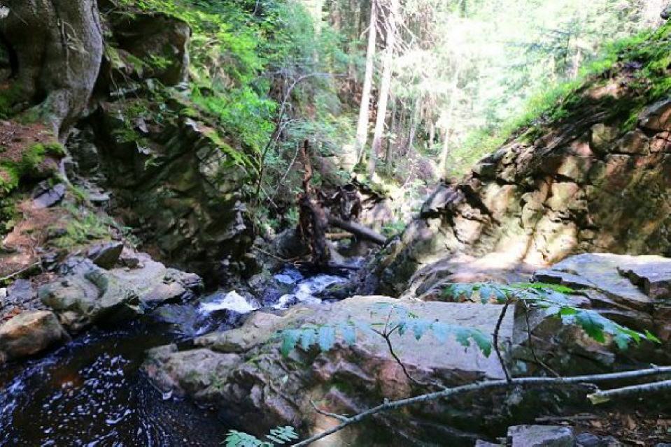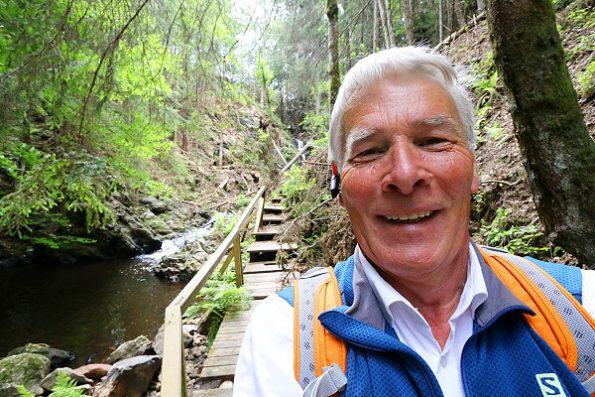 Am Wasserfall führt eine hölzerne Treppe hinunter. Aufgrund von Sturmschäden ist jedoch Vorsicht geboten. Die ehemalige Brücke ist selbst nach Jahren zerstört und nicht wieder ersetzt worden. Jedoch lässt sich der Gebirgsbach über die im Wasser liegenden Steine überqueren. Auf der anderen Seite führt ein hölzerner Weg weiter und wird von einem ansteigenden Waldweg abgelöst. Beim Aufstieg durch den Wald links halten und auf der ersten Straße fast ebenerdig zurück zur Kuranlage laufen.