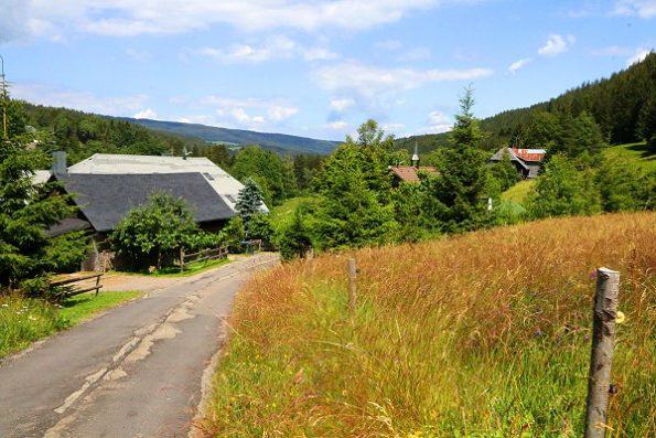 Von hier aus starten wir die Tour auf der Haslachstraße in Richtung Osten durch eine herrliche Wiesenlandschaft. Bereits beim Weiher können tliche Kunstwerke der hier lebenden Biber bestaunt werden. Ein paar 100 m weiter rechts in den Lenzkircher Weg abbiegen. Nach 1,1 km erreichen wir einen Wald; kurz danach links über einen schmalen Wanderpfad in Richtung Schlucht hinab laufen. Der Weg zum Wasserfall ist ausgeschildert.