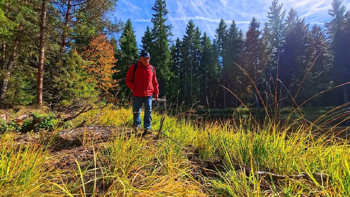 Start ist beim Strandbad am Klosterweiher in Friedenweiler, wo der Klosterbach angestaut ist. Dort den Bach queren und ansteigend in den Kosterwald wandern. Wir sind auf dem Kirchweg und kommen an einem Gedenkkreuz vorbei. Nach etwa einem Kilometer, sobald wir den Anstieg überwunden haben, vom Kirchweg rechts in die Elisabethen-Allee abbiegen. Der Forstweg führt schnurgeradeaus, bis wir nach ca. 2 km rechts ein Forsthaus erreichen, bald darauf links abbiegen. Nach wenigen 100 Metern erreichen wir den Floßbachweiher. Der Klosterwald ist von zahlreichen Forstwegen in Karrees eingeteilt. Der Wald lieferte viele Jahre lang das Scheitholz für die Stuben der Donaueschinger.