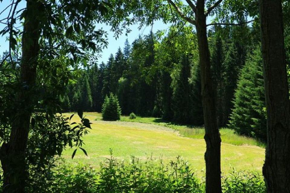 Der gut begehbare Bohlenweg führt durch Fichtenwald aus dem Moor heraus. Bald öffnet sich das Gelände in parkartige Streuwiesen. Sie liegen auf feuchtem Gelände, in dem Grundwasser zur Oberfläche aufquellt. Früher mähte man sie zur Gewinnung der Einstreu für den Stall, heute ist die Pflegemahd eine Naturschutzmaßnahme. Am Wegweiser „Mooshof“ wendet man sich nach Westen. Ab hier durchwandert man schöne Bergwiesen, die um das Moor herum liegen und im Frühling prächtig blühen. Bald nähert man sich wieder dem Fichten-Moorwald, 50 Meter nach dem Grillplatz geht es auf der im Winter als Loipe genutzten Trasse in den Wald. An Sportplatz und Gewerbegebiet vorbei erreicht man den Ausgangspunkt.