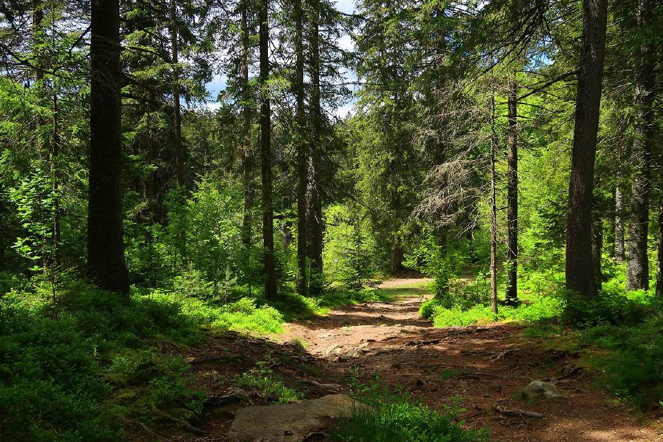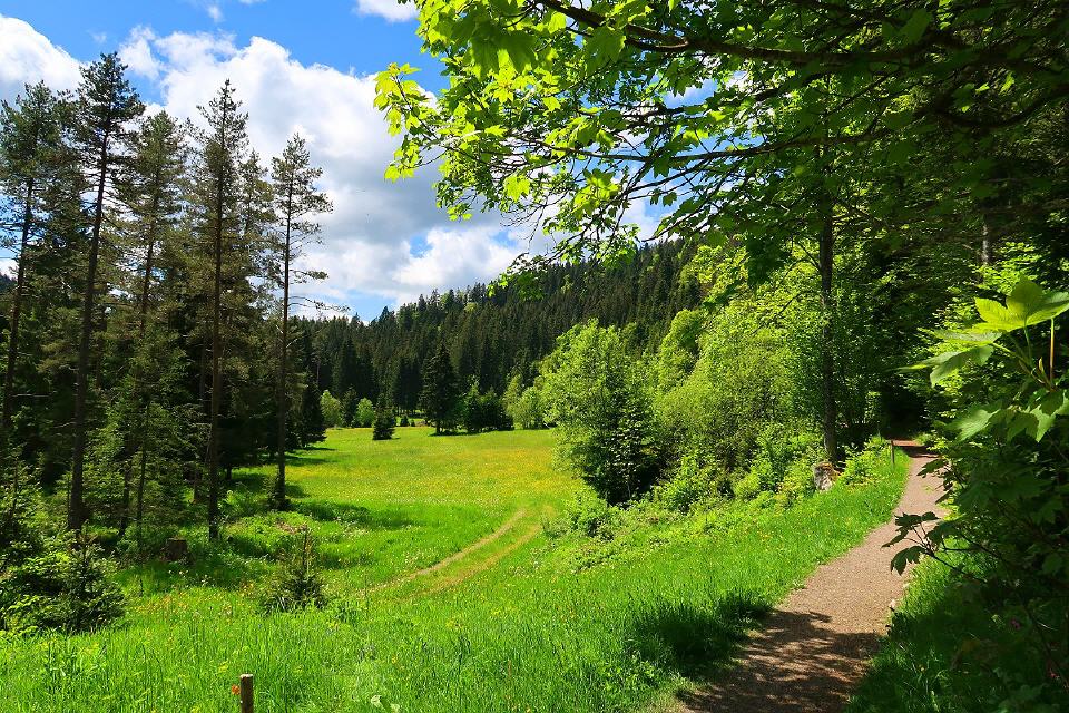 Dein nächstes Zwischenziel ist der versteckt im Naturschutzgebiet liegende Mathisleweiher. Hier kannst Du eine gemütliche Pause einlegen. Gestärkt gehst Du dann auf dem ansteigenden Weg bis zum Häuslebauernhof, wo Du den grandiosen Blick auf das Feldbergmassiv genießen kannst. Am naheliegenden Milchhisli kannst Du Dich mit einem gekühlten Getränk erfrischen (kostenpflichtig). Durch den dichten Nadelwald wanderst Du weiter aufsteigend bis auf den Bisten und anschließend auf den Windeckkopf (1209 m). Bei der Bergstation der Thoma-Skilifte kannst Du eine fantastische Aussicht genießen, dieses Mal über Hinterzarten bis zum Hochfirst und zur Weißtannenhöhe.