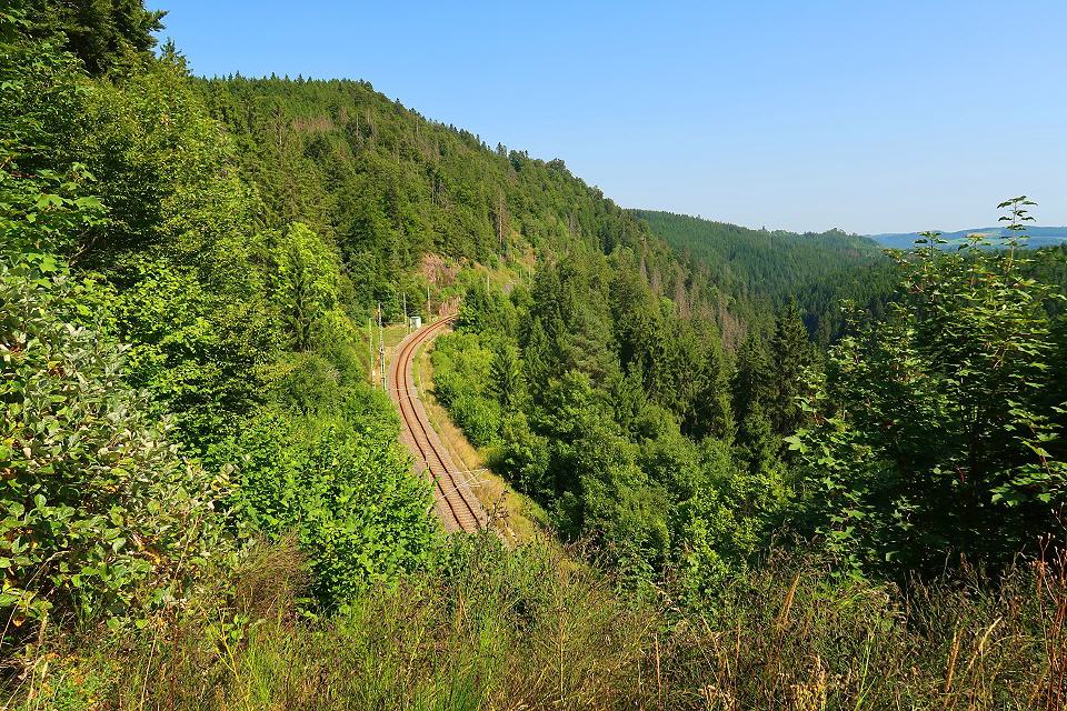 Über einen historischen Fuhrweg geht es steil bergan und weiter entlang einer stillgelegten Bahnstrecke, die heute als "Bähnleradweg" die Schwarzwaldstadt Neustadt mit Bonndorf verbindet. Später geht's auf schmalen Pfaden und teils entlang von Felswänden die wild-romantische Haslachschlucht entlang.