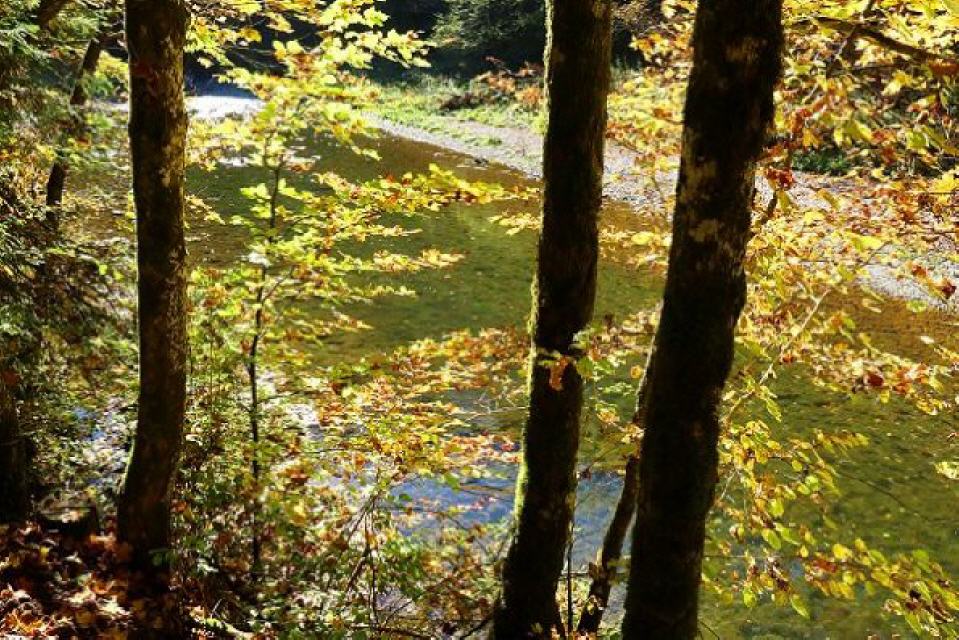 Andere Biotope beherbergen die Felsen, die vom Bach und der Erosion freigelegt wurden. An Stellen mit Hangrutschungen ist der Wald aufgelockert und bietet so lichtliebenden Kräutern Lebensmöglichkeiten. Und in kleinen Wasserbecken der Seitenzuflüsse findet man gelegentlich die Larven des Feuersalamanders, dem man bei regnerischem Wetter auch auf dem Weg begegnen kann.