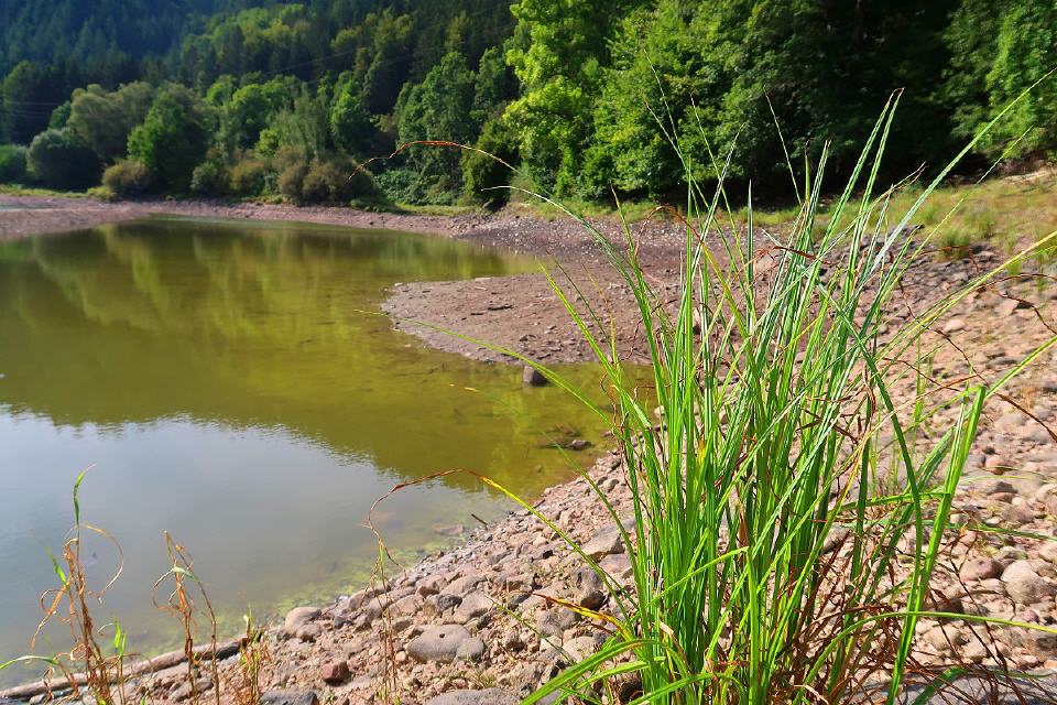 Dann bleibt man auf der rechten Seite des Ufers und beginntden See zu umrunden. Wenig später erreicht man eine Kneipp-Anlage am Albstausee, die versteckt im Wald einen Blick auf den See gewährt. Hier kann man die Füße im Wasser abkühlen und die Waldluft genießen. Erholt geht es weiter den Seerundweg entlang bis zur Staumauer.