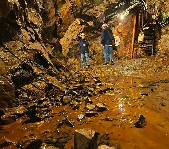 Der Tiefstollen und das gesamte Grubenlager können auf einer Länge von 500 Metern komplett barrierefrei und familienfreundlich erkundet werden. Mit Grubenhelm und Lampe ausgestattet, geht es durch die geheimnisvollen Gänge des Hoffnungsstollens.