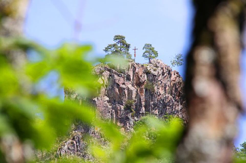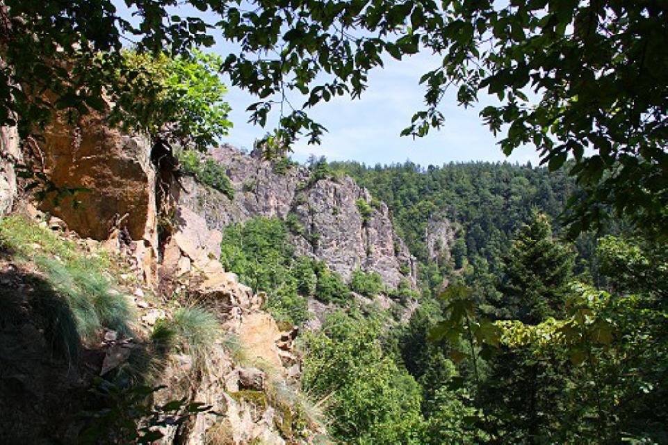 Dies wird man feststellen, wenn man den Witzeichenweg wandert oder auf einem der Gipfel des Falkensteins, des Vesperklotzes oder der mächtigen Tannholzwand sitzt: Die Schlücht, ein Bach, der diesem Tal den Namen gibt, sowie die Straße winden sich etwa 120 Meter tiefer durch das Tal. Mit etwas Glück (besonders im Frühling und Herbst) sieht man am südlichen Horizont die Alpengipfel aufragen. Bei besonders klarem Wetter hat man das Gefühl, die Berge fast greifen zu können.