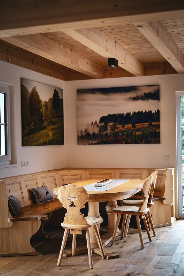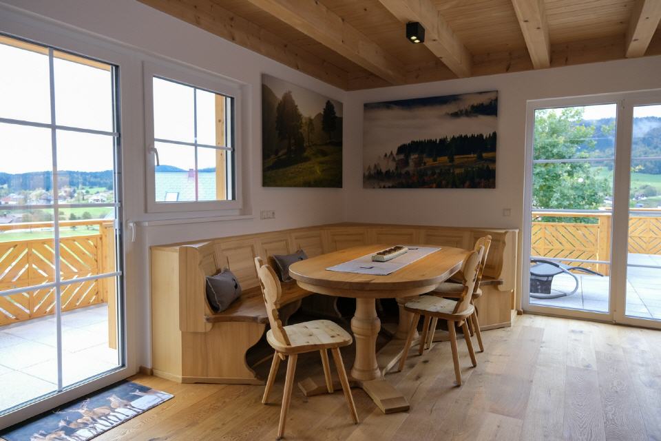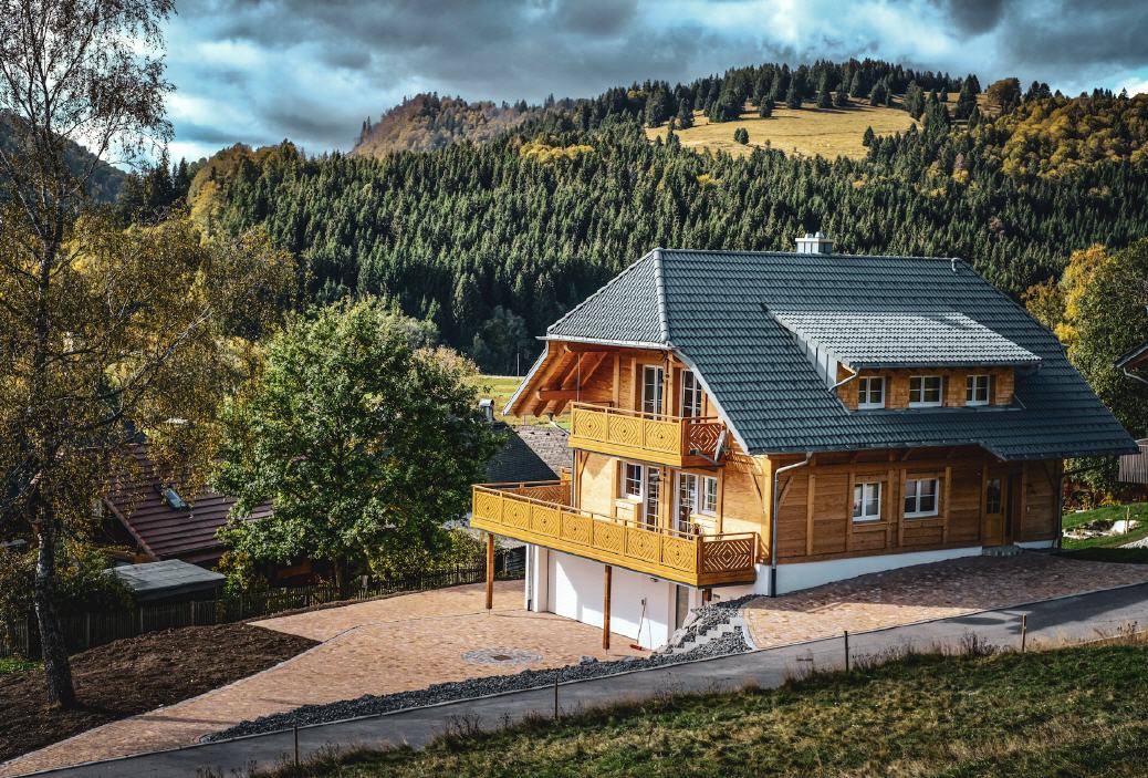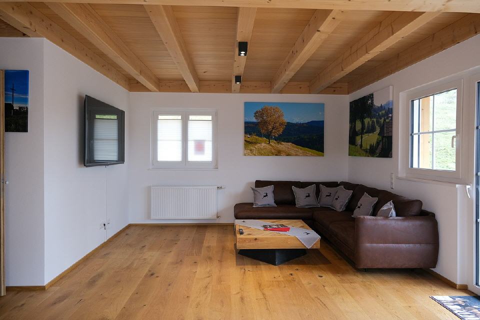 Genießen Sie erholsame Stunden und gönnen Sie sich eine Auszeit vom Alltag in unserem autarken Vollholz Schönzeit-Chalet. Das Chalet bietet Platz für 2 bis 6 Personen und besticht mit modernem Interieur und dezentem Luxus auf 160 qm Wohnfläche. Geschmacklich ansprechend und zugleich praktisch ausgestattet, lässt das Schönzeit-Chalet in Sachen Komfort keine Wünsche unerfüllt und garantiert eine unvergessliche Zeit in Bernau. Wohlfühlen, entspannen und Kraft tanken, dafür steht unser Chalet. Angegliedert an unseren 3*** Landgasthof, der sich ca. 100 m unterhalb des Chalets befindet, genießen Sie die Ruhe mit allen kulinarischen Vorzügen unserer Naturküche oder Sie verpflegen sich selbst in Ihrer modernen und großzügigen Eichenholzküche. Im 11. Monat des Jahres 2021 wurde das Weißtannenholz unseres Chalets in Bernauer Wäldern geschlagen. Geheizt wird mit heimischem Holz. Den Strom produzieren wir mit unseren Inn Dach PV Anlagen.
