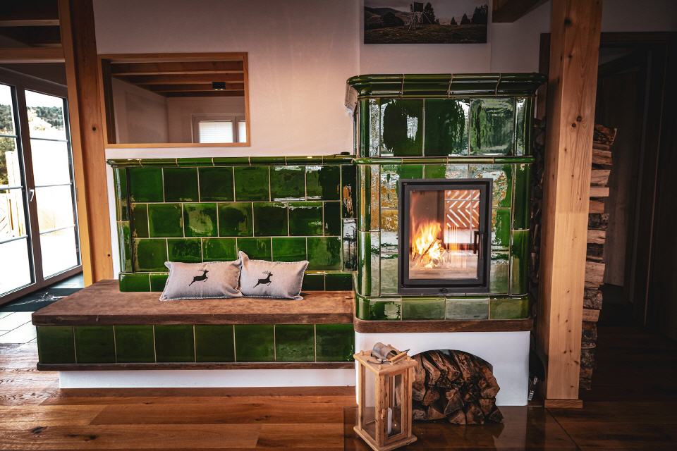 - Zum Verweilen lädt das sehr große Wohnzimmer mit Eckbank, TV Sitzecke mit Ledersofa und 50" Flat-TV ein. Ein offener Kamin mit Kachelofen und warmer Steinbank sorgen für mollige Wärme an den kälteren Tagen.