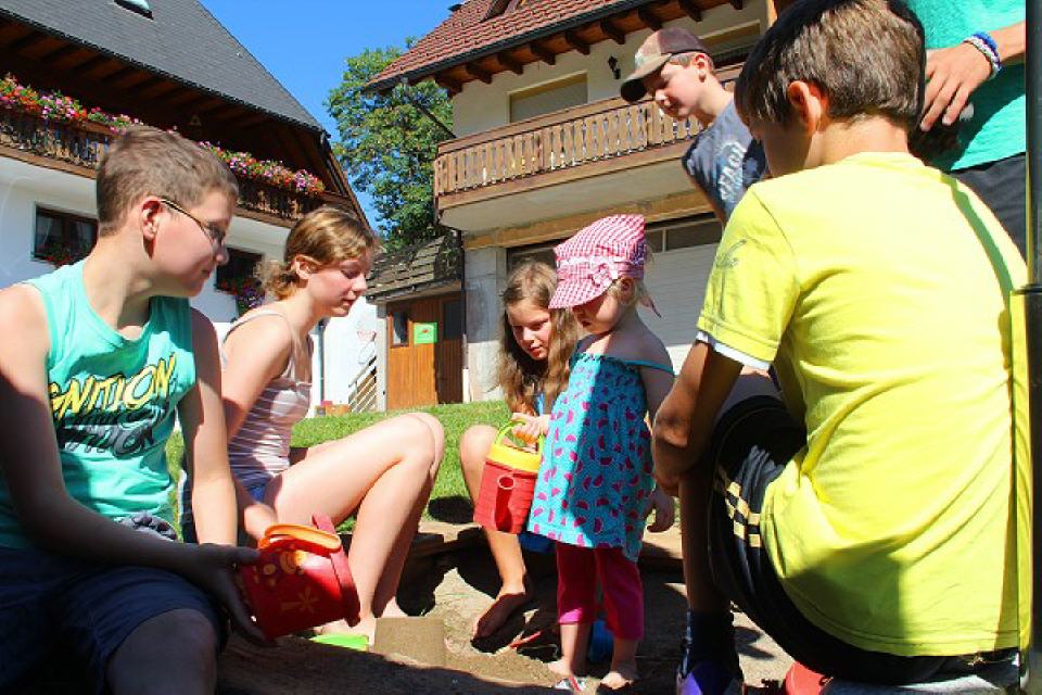Der Hof ist groß; hier können kleine Rennfahrer radfahren oder mit Tretautos herumkurven. Zusätzlich gibt es einige Spielgeräte wie Schaukel, Rutsche, Turnstange und Basketballkorb sowie einen Sandkasten. Unsere Gäste erhalten die Hochschwarzwald-Card. Damit können Sie über 50 Attraktionen ringsherum kostenlos nutzen, zum Beispiel ins Badeparadies am Titisee gehen, Boot fahren und noch viel, viel mehr…