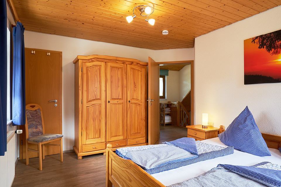 Beide Ferienwohnungen sind im neu erbauten Gästehaus untergebracht. Sie verfügen über jeweils vier Zimmer, bieten mit ihren 70 qm Wohnflächen genügend Platz für Familien und reichen über zwei Etagen. Beide Ferienwohnungen haben eigene Eingänge. Die Ferienwohnungen sind in Südlage, wohin auch die Balkone ausgerichtet sind. Sie sind nach Süden ausgerichtet. Sowohl auf der unteren als auch oberen Etagen finden Sie ein WC vor.