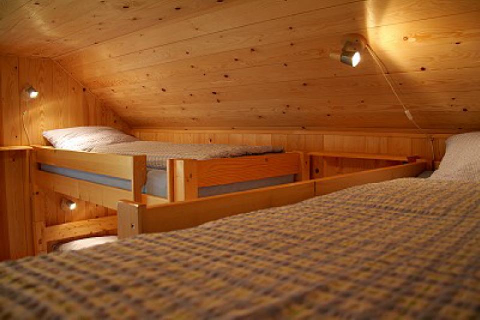 Im OG sind zwei Doppelzimmer und ein 4-Bettzimmer mit zwei Etagenbetten und ein Wohnzimmer mit Couch und TV. In einem der Doppelzimmer ist noch ein Kinderbett vorhanden. Zustellbett möglich.