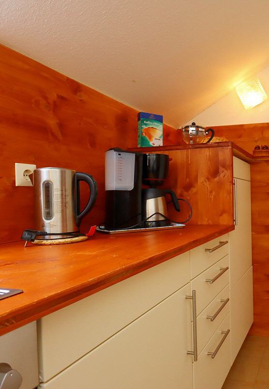 - Küche: komplett ausgestattet mit Herd und Backofen, Kühlschrank, Spülmaschine, Wasserkocher, Filterkaffeemaschine