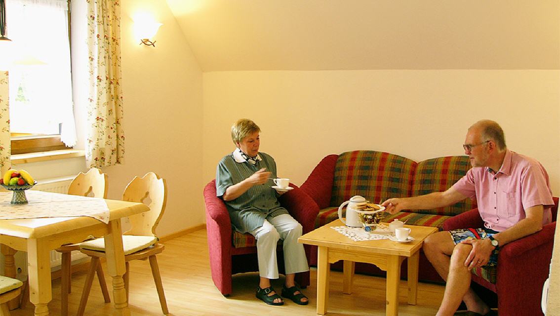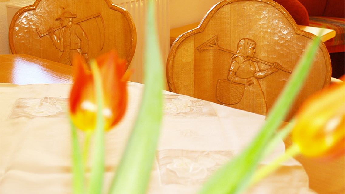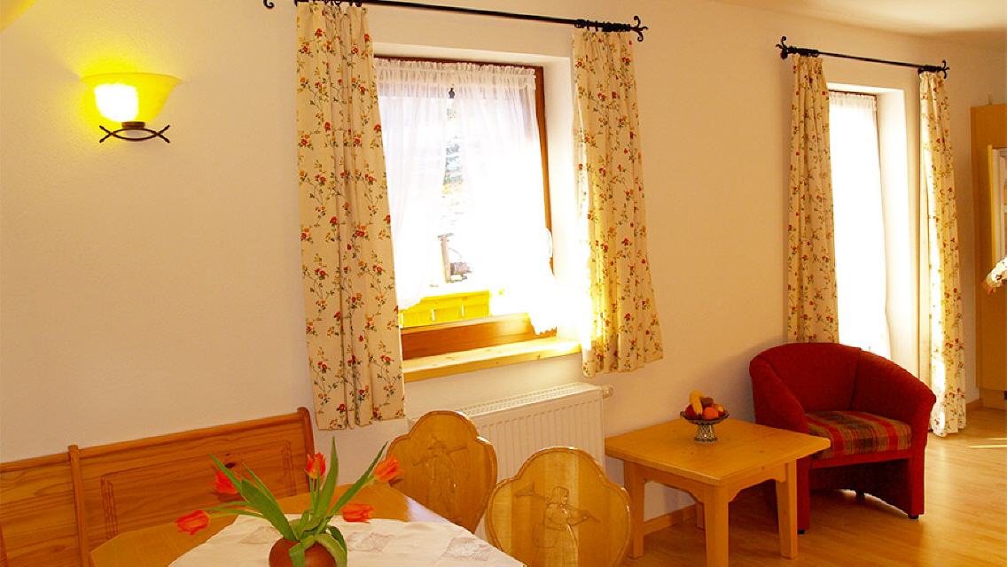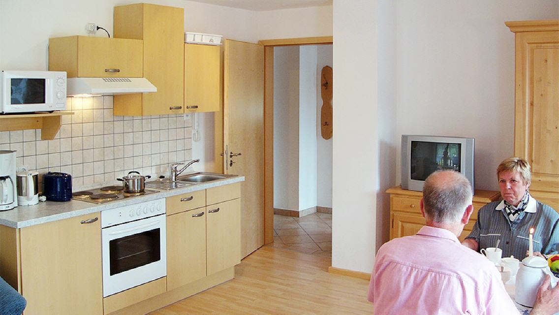 Freuen Sie sich auf moderne, großzügig im Landhausstil eingerichtete Ferienwochnungen (23,5 - 57 qm) mit Sat-TV, W-Lan, Dusche oder Bad, WC, Balkon oder Terrasse, gut ausgestattete Küchenzeile, Sitzecke. Gerne bieten wir Ihnen ein Frühstücksbuffet und Halbpension mit Menüwahl und Salatbuffet an. Im 2006 erbauten Haus liegen ausschließlich Nichtraucher-Ferienwohnungen.