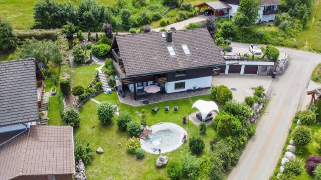 Das Ferienhaus Sonnenhüsli liegt in schöner Hanglage in einem Feriendorf bei Lenzkirch. Es ist liebevoll und mit Niveau eingerichtet. Mit Garten (uneinsehbar), Whirlpool und Sauna. Viele Details tragen zum besonderen Ambiente des Hauses bei. Antiquitäten, schöne Spiegel und Bilder wurden geschmackvoll arrangiert. Die angenehme Beleuchtung trägt für ein besonderes Raumklima bei. Bild antippen!